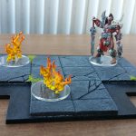 Le total fait 35pts avec un battlegroup basé sur les structures qui ne peuvent pas être mis KO ni entrée en furie et qui envoient valser leurs ennemies. Des petites pierres qui téléportent toujours surprenantes. Et des forêts, des forêts par millier pour boucher les lignes de vue. C’est tout ce qu’il faut pour prendre du plaisir.